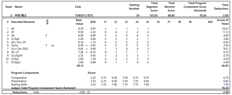 「アクセルが朝の公式練習から少しずれていたので、ショートも6分間でもあまりいいのが跳べていなかったので、アクセルから崩れたと思います」