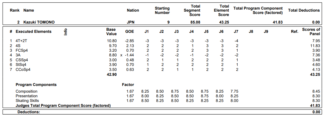 フィギュアスケートのチャレンジャー・シリーズ(CS)、木下グループ杯は5日、大阪府の関空アイスアリーナで開幕。男子ショートプログラム(SP)で友野一希(第一住建グループ)が85・08点で2位につけた。