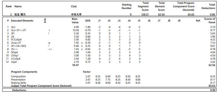 「ミスが出てしまったのはすごく悔しい部分ではあるんですけど、全体を通してすごくのびのびと気持ちよく滑れていたなっていうのがあるし、点数も自分が思っていた以上のものをいただくことができたので、今日はとりあえずは、悔しい気持ちもありつつ、終わった、良かったという気持ちになりたいです」