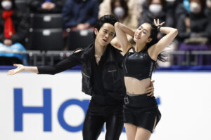 今季から女子との二刀流に挑戦中の櫛田と、男子から転向した島田の愛称「いくこう」コンビは2030年冬季オリンピック出場を目標に掲げる。この日はエントリー1組で「Got The Groove/Show Me Something Special」のアップテンポな音楽で滑るリズムダンス(RD)を初披露。2人そろってターンを繰り返すツイズルやリフト、切れのある踊りで観客から拍手をもらった。