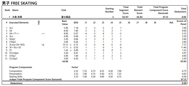 コメント全文 大島光翔、今季のハッシュタグは- ジャパン着るためにチャレンジも 【関東選手権男子フリー】 大島 光翔関東選手権 関東選手権 大島 光翔 男子フリー(撮影・高橋未羽) SNSでシェア フィギュアスケートの関東選手権は26日、甲府市の小瀬スポーツ公園アイスアリーナで行われ、男子は大島光翔(富士薬品)がショートプログラム(SP)に続いてフリーも1位となり、合計203・33点で優勝した。 大島の演技詳細とコメント全文は次の通り。(取材・高橋未羽) ー本日の演技を振り返っていかがですか。 「乱れた部分もあったんですけれども、最後まで楽しむ気持ちを忘れずに、お客さんとみんなが盛り上がってもらって、楽しく最後まで滑り切れたんで良かったかなというふうに思います」 関東選手権 大島 光翔 男子フリー(撮影・高橋未羽) facebook X(旧Twitter) LINE URLをコピー いいね 次の記事 前の記事 あわせて読みたい 大島光翔「より上を目指して全力で頑張りたい」 佐藤駿と全日本ノービスBで滑った思い入れがある会場 【東日本選手権男子フリー】 コメント全文 2025.10.28 大島光翔、妹の演目の振り付けに初めてチャレンジ 「演技と違った難しさあり、自分の動き見直す機会に」 【東日本選手権・男子SP】 コメント全文 2025.10.25 木村碧一、羽生結弦さんを見て使ってみたい「ロミジュリ」 同じリンクの佐藤駿や大島光翔「すごいなと思いながらいつも見てる」【全日本ノービス選手権A男子】 コメント全文 2025.10.21 戸田晴登、滑走屋で新たな技術、表現も習得 大島光翔との練習で心の持ちよう変わった 【東日本学生選手権男子フリー】 コメント全文 2025.10.13 大島光翔、夢だったジャパン着たくて頑張る 佐藤駿に明大主将を引き継ぎ「彼らしくやって」 【関東選手権男子SP】 コメント全文 2025.09.27 大島光翔、目指すのは「見ていて素直に腹抱えて笑えるようなプログラム」 【サマーカップ男子フリー後】 コメント全文 2025.08.13 ピックアップ 【独自】角野隼斗さん、鍵山優真が持つ三つの速さをピアノ協奏曲に リンクにあったピアノ練習場ですぐに曲作りを開始 インタビュー 2025.11.08 【独自】ゆなすみはダイヤモンドの原石、磨き上げるために鍛える必要ある 「彼らには全てがそろっている」と新たに指導するドミトリー・サビン・コーチ インタビュー 2025.10.28 【独自】理事長就任の本田武史さん、伝統引き継いで 高橋大輔さん、宮原知子さん加入でレベルアップ 四大陸選手権での6点満点が一番うれしかった インタビュー 2025.10.27 【独自】結成したばかりのあゆルカ、カナダで3週間の強化合宿 籠谷歩未は仕事と両立、本田ルーカス剛史「練習の仕方学んだ」 インタビュー 2025.08.27 新着 インタビュー コメント全文 連載 写真ギャラリー 選手名鑑 大会特集 大会日程 アイスショー Podcast 動画 イベント 選手支援 このサイトでは、利用状況の把握などのために、Cookieなどを使用してアクセスデータを取得・利用しています。 これ以降ページを遷移した場合、Cookieなどの設定や使用に同意したことになります。 オプトアウトについては、当サイトのサイトポリシーをご覧下さい。