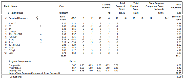 コメント全文 奥野友莉菜、初の団体戦「皆わちゃわちゃしていて、少し気持ちが楽になった」 【東日本学生選手権女子フリー】 奥野 友莉菜 東日本学生選手権 奥野友莉菜(撮影:高橋未羽) SNSでシェア フィギュアスケートのフリーのみで争う東日本学生選手権は12日、東京辰巳アイスアリーナで行われ、女子は江川マリア(明大)が115.22点で初優勝。奥野友莉菜(明大)は108.16点で2位だった。 奥野の演技詳細とコメント全文は次の取り。(取材・高橋未羽) facebook X(旧Twitter) LINE URLをコピー いいね 次の記事 前の記事 あわせて読みたい 奥野友莉菜「すごい悔しいシーズン」 順位的に良かったとしても、それ相応の点数とか、内容じゃないと【東京都民体育大会女子フリー】 コメント全文 2025.11.16 奥野友莉菜、特に仲がいいっていうと、やっぱり住吉りをんちゃん 「目標に向かって努力して努力して、まっすぐ突き進んでいる」【東京都民体育大会女子SP】 コメント全文 2025.11.15 ピックアップ 友野一希、スケートアメリカで驚いた演技前「ハイタッチ」 黒い革手袋の右手を差し出した平池大人コーチの思いとは 連載 2025.11.20 りかしん結成、紀平梨花が秘めた思い打ち明けて アイスダンスを始めて靱帯損傷に軽度の肋骨骨折 2030年オリンピックへ、西山真瑚「同じ目標持って頑張れる」 インタビュー 2025.11.12 【独自】振付師ブノワ・リショー氏、坂本花織の演技は人の魂を揺さぶる 引退シーズンSPは傑作の予感「この曲で滑るべきと頭に浮かんだ」 インタビュー 2025.11.11 【独自】角野隼斗さん、鍵山優真が持つ三つの速さをピアノ協奏曲に リンクにあったピアノ練習場ですぐに曲作りを開始 インタビュー 2025.11.08 【独自】ゆなすみはダイヤモンドの原石、磨き上げるために鍛える必要ある 「彼らには全てがそろっている」と新たに指導するドミトリー・サビン・コーチ インタビュー 2025.10.28 【独自】理事長就任の本田武史さん、伝統引き継いで 高橋大輔さん、宮原知子さん加入でレベルアップ 四大陸選手権での6点満点が一番うれしかった インタビュー 2025.10.27 新着 インタビュー コメント全文 連載 写真ギャラリー 選手名鑑 大会特集 大会日程 アイスショー Podcast 動画 イベント 選手支援 このサイトでは、利用状況の把握などのために、Cookieなどを使用してアクセスデータを取得・利用しています。 これ以降ページを遷移した場合、Cookieなどの設定や使用に同意したことになります。 オプトアウトについては、当サイトのサイトポリシーをご覧下さい。