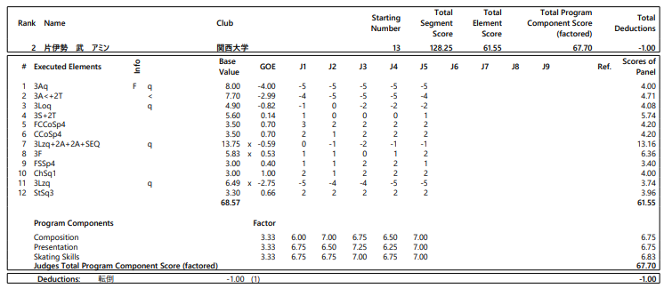 「準優勝で終われたことはうれしいことなんですけど、自分の演技の内容と点数から見ると、あまり納得できるものではなかったので」