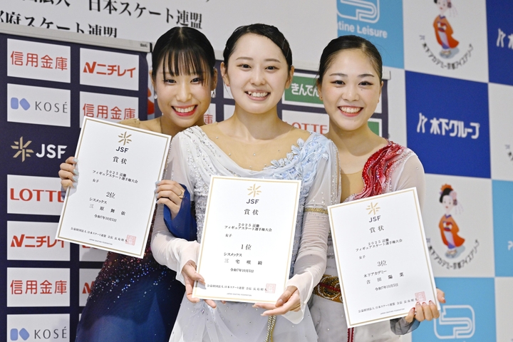 フィギュアスケートの近畿選手権は4日、京都府宇治市の木下アカデミー京都アイスアリーナで行われ、女子ショートプログラム(SP)は三宅咲綺が68・56点で首位に立ち、三原舞依(以上シスメックス)が65・60点で2位につけた。吉田陽菜(木下アカデミー)は4位だった。