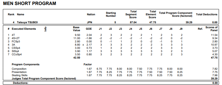 コメント全文 壷井達也、表彰台独占の女子に負けたくないって... 去年より下の点が上がっているのは成長したところ 【GPフランス大会・男子SP】 フランス大会壷井 達也 フランス大会 壷井 達也 SNSでシェア 【アンジェ(フランス)共同】フィギュアスケートのグランプリ(GP)シリーズ開幕戦、フランス大会第2日は18日、アンジェで行われ、男子ショートプログラム(SP)で壷井達也(シスメックス)は87・04点で4位につけた。 壷井の演技詳細とコメント全文は次の通り。 ―自己ベスト更新しました。 「ありがとうございます」 ―演技振り返ってどうでしょうか。 「やっぱり90点いかなかったところは悔しいですね」 フランス大会 壷井 達也 facebook X(旧Twitter) LINE URLをコピー いいね この記事を書いた人 藤原 慎也 (ふじわら・しんや) 全国紙で5年間の勤務を経て、2014年に入社。名古屋でプロ野球中日を取材。2016年末に東京運動部へ異動し、フィギュアスケート、体操、パラスポーツを担当。だんじり祭りで有名な岸和田市育ち。 この記者のページへ進む 次の記事 前の記事 あわせて読みたい 壷井達也、4回転3本の構成に体や気持ち追い付いていない 「オリンピックへ自分の中での挑戦が試合で報われない」 【GP第5戦スケートアメリカ男子フリー】 コメント全文 2025.11.16 壷井達也「動揺はあったが原因ではない」 自己分析したミスの理由とは 【GP第5戦スケートアメリカ・男子SP】 コメント全文 2025.11.15 壷井達也、ユニバで来た時は凍った湖で山本草太くんが... 出発前に腰が痛くなったけど「長距離移動で結構治った」 【GP第5戦スケートアメリカ公式練習】 コメント全文 2025.11.14 渡辺倫果、充実の1週間過ごして「あとは…」 友野一希は優勝へ攻めの姿勢【GP第5戦スケートアメリカ空港到着】 コメント全文 2025.11.12 壷井達也、陸上に例えると1キロダッシュ途中に高跳びある感じ フリー冒頭からの4回転3本へ集中力続ける難しさを表現 【全兵庫選手権男子】 コメント全文 2025.10.27 坂本花織「こういう悔しい思いしたない」 2位という「負け」でつかんだ収穫も【GPフランス大会から帰国】 コメント全文 2025.10.22 ピックアップ デザイナーの卵がいつか浅田真央さんの衣装を作ると決心するまで 試行錯誤の日々、2週間で仕上げた羽生結弦さんの『オペラ座の怪人』 伊藤聡美さんインタビュー(上) 連載 2025.11.29 りくりゅうが持つ強みを引き出し、最高の状態に導くことが仕事 自分たちらしくあるから生まれる2人の特別な魔法保つことが重要 【名将ブルーノの目・第4回GPスケートアメリカ(下)】 連載 2025.12.01 友野一希、スケートアメリカで驚いた演技前「ハイタッチ」 黒い革手袋の右手を差し出した平池大人コーチの思いとは 連載 2025.11.20 【独自】振付師ブノワ・リショー氏、坂本花織の演技は人の魂を揺さぶる 引退シーズンSPは傑作の予感「この曲で滑るべきと頭に浮かんだ」 インタビュー 2025.11.11 【独自】ゆなすみはダイヤモンドの原石、磨き上げるために鍛える必要ある 「彼らには全てがそろっている」と新たに指導するドミトリー・サビン・コーチ インタビュー 2025.10.28 【独自】理事長就任の本田武史さん、伝統引き継いで 高橋大輔さん、宮原知子さん加入でレベルアップ 四大陸選手権での6点満点が一番うれしかった インタビュー 2025.10.27 新着 インタビュー コメント全文 連載 写真ギャラリー 選手名鑑 大会特集 大会日程 アイスショー Podcast 動画 イベント 選手支援 このサイトでは、利用状況の把握などのために、Cookieなどを使用してアクセスデータを取得・利用しています。 これ以降ページを遷移した場合、Cookieなどの設定や使用に同意したことになります。 オプトアウトについては、当サイトのサイトポリシーをご覧下さい。