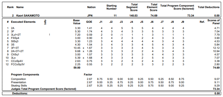 【アンジェ(フランス)共同】フィギュアスケートのグランプリ(GP)シリーズ開幕戦、フランス大会第2日は18日、アンジェで行われ、女子は今季限りで引退する坂本花織(シスメックス)がショートプログラム(SP)に続いてフリーも2位となり、合計224・23点で2位となった。