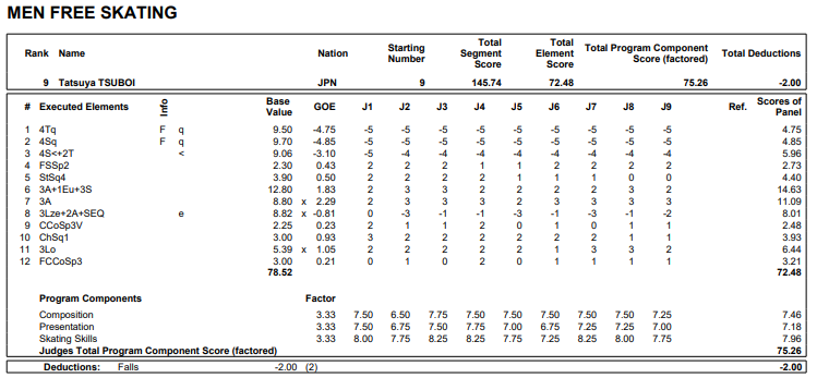 コメント全文 壷井達也、4回転はぎりぎりでやっているのが本音 どんどんプログラムの中でなじませていなかいと 【GPフランス大会・男子フリー】 フランス大会壷井 達也 フランス大会 壷井 達也 SNSでシェア 【アンジェ(フランス)共同】フィギュアスケートのグランプリ(GP)シリーズ開幕戦、フランス大会最終日は19日、アンジェで行われ、男子でショートプログラム(SP)4位の壷井達也(シスメックス)はフリーで9位となり、合計232・78点で7位だった。 壷井の演技詳細とコメント全文は次の通り。 ―悔しい内容だったと思いますが、特にどうですか。 「やっぱり、何て言うんですかね、ショートが終わって、気持ちを入れ替えてきたつもりだったんですけど、朝の練習からちょっとはまらないジャンプが多くて、いや~、まだまだこの構成に自分の実力が追い付いていないというのは感じます」 facebook X(旧Twitter) LINE URLをコピー いいね この記事を書いた人 藤原 慎也 (ふじわら・しんや) 全国紙で5年間の勤務を経て、2014年に入社。名古屋でプロ野球中日を取材。2016年末に東京運動部へ異動し、フィギュアスケート、体操、パラスポーツを担当。だんじり祭りで有名な岸和田市育ち。 この記者のページへ進む 次の記事 前の記事 あわせて読みたい 壷井達也、4回転3本の構成に体や気持ち追い付いていない 「オリンピックへ自分の中での挑戦が試合で報われない」 【GP第5戦スケートアメリカ男子フリー】 コメント全文 2025.11.16 壷井達也「動揺はあったが原因ではない」 自己分析したミスの理由とは 【GP第5戦スケートアメリカ・男子SP】 コメント全文 2025.11.15 壷井達也、ユニバで来た時は凍った湖で山本草太くんが... 出発前に腰が痛くなったけど「長距離移動で結構治った」 【GP第5戦スケートアメリカ公式練習】 コメント全文 2025.11.14 渡辺倫果、充実の1週間過ごして「あとは…」 友野一希は優勝へ攻めの姿勢【GP第5戦スケートアメリカ空港到着】 コメント全文 2025.11.12 壷井達也、陸上に例えると1キロダッシュ途中に高跳びある感じ フリー冒頭からの4回転3本へ集中力続ける難しさを表現 【全兵庫選手権男子】 コメント全文 2025.10.27 坂本花織「こういう悔しい思いしたない」 2位という「負け」でつかんだ収穫も【GPフランス大会から帰国】 コメント全文 2025.10.22 ピックアップ デザイナーの卵がいつか浅田真央さんの衣装を作ると決心するまで 試行錯誤の日々、2週間で仕上げた羽生結弦さんの『オペラ座の怪人』 伊藤聡美さんインタビュー(上) 連載 2025.11.29 りくりゅうが持つ強みを引き出し、最高の状態に導くことが仕事 自分たちらしくあるから生まれる2人の特別な魔法保つことが重要 【名将ブルーノの目・第4回GPスケートアメリカ(下)】 連載 2025.12.01 友野一希、スケートアメリカで驚いた演技前「ハイタッチ」 黒い革手袋の右手を差し出した平池大人コーチの思いとは 連載 2025.11.20 【独自】振付師ブノワ・リショー氏、坂本花織の演技は人の魂を揺さぶる 引退シーズンSPは傑作の予感「この曲で滑るべきと頭に浮かんだ」 インタビュー 2025.11.11 【独自】ゆなすみはダイヤモンドの原石、磨き上げるために鍛える必要ある 「彼らには全てがそろっている」と新たに指導するドミトリー・サビン・コーチ インタビュー 2025.10.28 【独自】理事長就任の本田武史さん、伝統引き継いで 高橋大輔さん、宮原知子さん加入でレベルアップ 四大陸選手権での6点満点が一番うれしかった インタビュー 2025.10.27 新着 インタビュー コメント全文 連載 写真ギャラリー 選手名鑑 大会特集 大会日程 アイスショー Podcast 動画 イベント 選手支援 このサイトでは、利用状況の把握などのために、Cookieなどを使用してアクセスデータを取得・利用しています。 これ以降ページを遷移した場合、Cookieなどの設定や使用に同意したことになります。 オプトアウトについては、当サイトのサイトポリシーをご覧下さい。