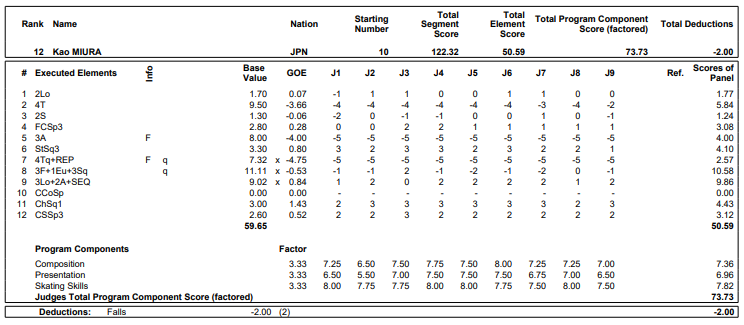 コメント全文 三浦佳生、失敗しても会場の皆さんが温かかった 鼓舞する声援も演技内容に「何か悲しい気持ち」 【GPフランス大会・男子フリー】 フランス大会三浦 佳生 フランス大会 三浦 佳生 SNSでシェア 【アンジェ(フランス)共同】フィギュアスケートのグランプリ(GP)シリーズ開幕戦、フランス大会最終日は19日、アンジェで行われ、男子でショートプログラム(SP)3位の三浦佳生(オリエンタルバイオ・明大)はフリーで12位となり、合計209・57点で10位だった。 三浦の演技詳細とコメント全文は次の通り。 ―フリーの演技を終えて。 「何か、何でこうなってんのかなっていう…。練習で起きない失敗ばっかりで。6分(間練習)も調子良かったし、ここまでの試合の運び方も良かったはず、だったんですけど、言葉が出ないというか。何でこうなっちゃったんだろうっていうのがまず一番です」 facebook X(旧Twitter) LINE URLをコピー いいね この記事を書いた人 藤原 慎也 (ふじわら・しんや) 全国紙で5年間の勤務を経て、2014年に入社。名古屋でプロ野球中日を取材。2016年末に東京運動部へ異動し、フィギュアスケート、体操、パラスポーツを担当。だんじり祭りで有名な岸和田市育ち。 この記者のページへ進む 次の記事 前の記事 あわせて読みたい フリー変更の三浦佳生、あの「代表作」も候補だったと告白 メンタル立て直しの鍵は「ご機嫌の感情」と「今、ここ、自分」 【GP第3戦スケートカナダ帰国】 コメント全文 2025.11.04 佐藤紀子コーチ、教え子の三浦佳生を「やんちゃくれ?」に報道陣笑い ジャンプにもつながるスケーティング「もっとやってって感じですよ」 【GPスケートカナダ男子フリー】 コメント全文 2025.11.03 三浦佳生、もっとご機嫌を手放さない練習をしたい メンタルトレーナーと話し「自分信じると気持ち楽」 【GPスケートカナダ男子フリー】 コメント全文 2025.11.03 復活期す三浦佳生、あえて封印する思いとは 友人頼り「結構有名なメンタルトレーニングの先生と」【GPスケートカナダ男子SP】 コメント全文 2025.11.02 三浦佳生、相談して昨季の演目「シェルブールの雨傘」に フランス大会がフラッシュバックするというか気分悪く 【GPスケートカナダ公式練習】 コメント全文 2025.10.31 全く緊張していない中井亜美「結構、試合が楽しみ」 友野一希は「(状態は)ばっちり。でもすごい緊張している」 【GPスケートカナダ空港到着】 コメント全文 2025.10.29 ピックアップ デザイナーの卵がいつか浅田真央さんの衣装を作ると決心するまで 試行錯誤の日々、2週間で仕上げた羽生結弦さんの『オペラ座の怪人』 伊藤聡美さんインタビュー(上) 連載 2025.11.29 りくりゅうが持つ強みを引き出し、最高の状態に導くことが仕事 自分たちらしくあるから生まれる2人の特別な魔法保つことが重要 【名将ブルーノの目・第4回GPスケートアメリカ(下)】 連載 2025.12.01 友野一希、スケートアメリカで驚いた演技前「ハイタッチ」 黒い革手袋の右手を差し出した平池大人コーチの思いとは 連載 2025.11.20 【独自】振付師ブノワ・リショー氏、坂本花織の演技は人の魂を揺さぶる 引退シーズンSPは傑作の予感「この曲で滑るべきと頭に浮かんだ」 インタビュー 2025.11.11 【独自】ゆなすみはダイヤモンドの原石、磨き上げるために鍛える必要ある 「彼らには全てがそろっている」と新たに指導するドミトリー・サビン・コーチ インタビュー 2025.10.28 【独自】理事長就任の本田武史さん、伝統引き継いで 高橋大輔さん、宮原知子さん加入でレベルアップ 四大陸選手権での6点満点が一番うれしかった インタビュー 2025.10.27 新着 インタビュー コメント全文 連載 写真ギャラリー 選手名鑑 大会特集 大会日程 アイスショー Podcast 動画 イベント 選手支援 このサイトでは、利用状況の把握などのために、Cookieなどを使用してアクセスデータを取得・利用しています。 これ以降ページを遷移した場合、Cookieなどの設定や使用に同意したことになります。 オプトアウトについては、当サイトのサイトポリシーをご覧下さい。