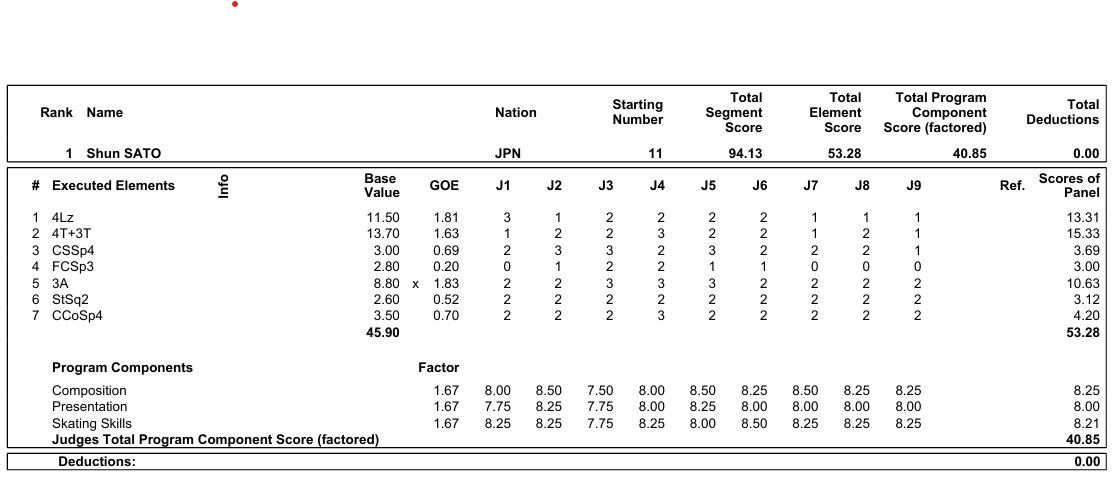 コメント全文 佐藤駿、6分間練習でうれしい違和感「あれ?今日感じないな」 アドレナリンと痛み止め「全く気にならずにできた」 【GP中国杯・男子SP】 中国杯佐藤 駿 男子SP 演技する佐藤駿=重慶(共同) SNSでシェア 【重慶共同】フィギュアスケートのグランプリ(GP)シリーズ第2戦、中国杯は24日、重慶で開幕し、男子ショートプログラム(SP)で佐藤駿(エームサービス・明大)が94・13点で首位に立った。 佐藤の演技詳細とコメント全文は次の通り。 ―振り返ってみていかがですか。 「まず6分間練習はすごく良かったなと感じていて。その流れのまま、本番も滑ることができました」 ―点数を見て、率直にどう思いましたか。 「すごく良かったとは思っているんですけど、レベルの取りこぼしが少しあったので。フリーでは特にステップの部分でもっと頑張っていきたいと思いました」 facebook X(旧Twitter) LINE URLをコピー いいね この記事を書いた人 品川 絵里 (しながわ・えり) 2018年に入社し、大分支局を経て20年から東京、大阪、名古屋でスポーツを取材。現在はプロ野球中日、フィギュアスケートなどを担当している。中高は創作ダンス部で、趣味は宝塚歌劇やミュージカル、中韓ドラマの鑑賞。 この記者のページへ進む 次の記事 前の記事 あわせて読みたい 佐藤駿、キスクラでの日下匡力コーチのリアクションに…「いつもすごい大きいですけど、今大会はオーバーなくらいで、うれしかった」【GPファイナル一夜明け】 コメント全文 2025.12.07 佐藤駿、歴史的な演技の後にリンクへ 「次元が違うな。もう彼は別だと思って自分に集中して」【GPファイナル男子フリー】 コメント全文 2025.12.06 佐藤駿、右足首のけがは「自分的には完治したんじゃないのかな」 フリーへ「一番は気持ち。会場の皆さんと笑顔で終われるように」 【GPファイナル男子SP】 コメント全文 2025.12.04 佐藤駿、振り付け依頼するシゼロンと同じ舞台「変な感じ」 NHK杯後に3、4日のオフ取り「休んで足の状態を完璧に」 【GPファイナル公式練習】 コメント全文 2025.12.03 日下匡力コーチ、佐藤駿は宇野昌磨さんの助言生かした練習が自信に メンタル強く、気持ち整理してコントロールするのがものすごく早い 【GP第4戦NHK杯男子フリー】 コメント全文 2025.11.09 佐藤駿、まっさらな状態でファイナルに臨めるように、その流れで全日本もいけるように 「自信をつけた状態でNHK杯に出ることができた」【GP第4戦NHK杯一夜明け】 コメント全文 2025.11.09 ピックアップ 夢がかなった先に見えたパリでのファッションショー デザイナーの考えが尊重される海外選手からの依頼 伊藤聡美さんに聞く(下) 連載 2025.12.10 【独自】本郷裕子コーチ、「ここまでなのかな」と漏らした山本草太が満知子先生の言葉で... ジャンプに執着すると「振りとか上手なのに省いたりするから…」 【単独インタビュー・3回続きの(上)】 インタビュー 2025.12.09 りくりゅうが持つ強みを引き出し、最高の状態に導くことが仕事 自分たちらしくあるから生まれる2人の特別な魔法保つことが重要 【名将ブルーノの目・第4回GPスケートアメリカ(下)】 連載 2025.12.01 友野一希、スケートアメリカで驚いた演技前「ハイタッチ」 黒い革手袋の右手を差し出した平池大人コーチの思いとは 連載 2025.11.20 【独自】振付師ブノワ・リショー氏、坂本花織の演技は人の魂を揺さぶる 引退シーズンSPは傑作の予感「この曲で滑るべきと頭に浮かんだ」 インタビュー 2025.11.11 【独自】ゆなすみはダイヤモンドの原石、磨き上げるために鍛える必要ある 「彼らには全てがそろっている」と新たに指導するドミトリー・サビン・コーチ インタビュー 2025.10.28 新着 インタビュー コメント全文 連載 写真ギャラリー 選手名鑑 大会特集 大会日程 アイスショー Podcast 動画 イベント 選手支援 このサイトでは、利用状況の把握などのために、Cookieなどを使用してアクセスデータを取得・利用しています。 これ以降ページを遷移した場合、Cookieなどの設定や使用に同意したことになります。 オプトアウトについては、当サイトのサイトポリシーをご覧下さい。