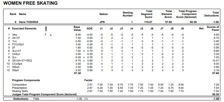 【重慶共同】フィギュアスケートのグランプリ(GP)シリーズ第2戦、中国杯最終日は25日、重慶で行われ、女子でショートプログラム(SP)11位の吉田陽菜(木下アカデミー)はフリーで9位となり、合計176・54点で10位となった。