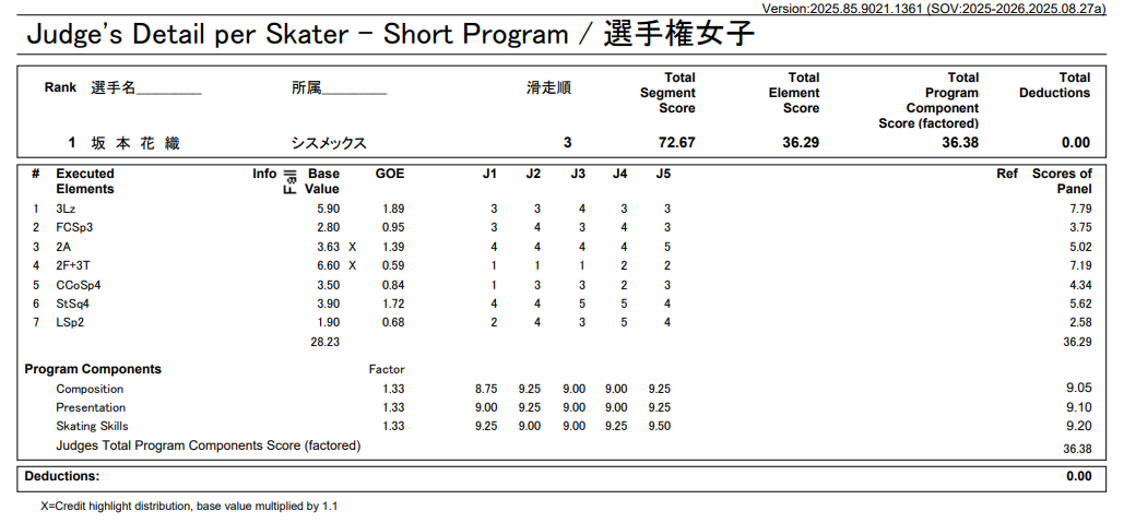 フィギュアスケート女子の坂本花織が26日、尼崎スポーツの森で行われた全兵庫選手権に出場し、合計225・29点で優勝した。25日のショートプログラム(SP)は72・67点、26日のフリーは152・62点でともにトップだった。