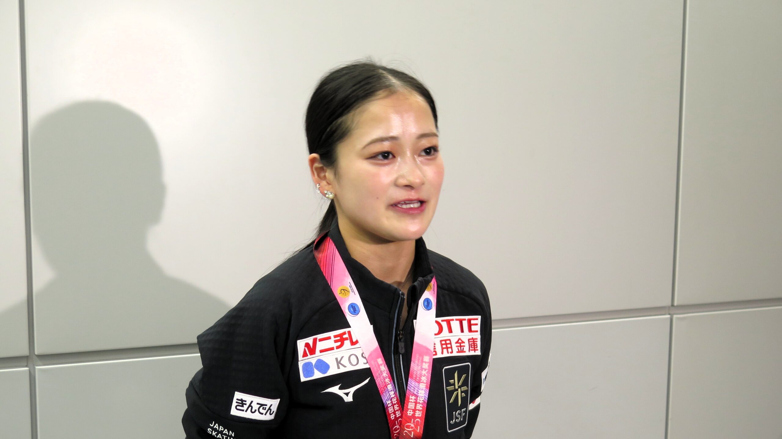 フィギュアスケートのグランプリ(GP)シリーズ第2戦、中国杯で女子3位となった渡辺倫果(わたなべ・りんか)(三和建装・法大)が27日、帰国した成田空港で取材に応じた。