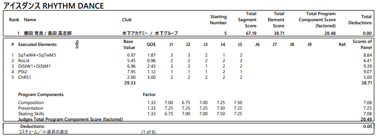 フィギュアスケートの西日本選手権第1日は1日、大津市の木下カンセーアイスアリーナで行われ、全日本選手権予選会のアイスダンス・リズムダンス(RD)では女子で全日本選手権2連覇の実績がある紀平梨花(トヨタ自動車)が西山真瑚(オリエンタルバイオ)と組んでデビューし、59・61点で2位となった。櫛田育良(木下アカデミー)島田高志郎(木下グループ)組が67・19点で首位。