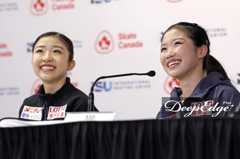 千葉百音、フィンランディア杯は「もっとパワフルに」 中井亜美はシニアデビューをひと言で表すと…【GPスケートカナダ女子メダリスト会見】