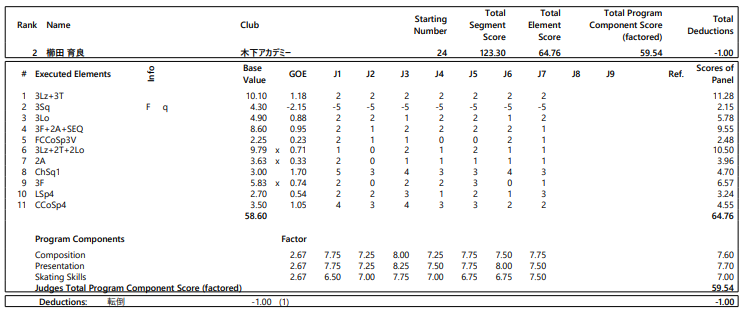 「自分で満足できる演技ではなかったんですけど、やっぱり四つ目のプログラムで体力的にも結構来ていた中で、ミスを最小限に抑えて最後まで滑りきることができて良かったです」
