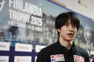 【ヘルシンキ共同】フィギュアスケートのグランプリ(GP)シリーズ最終第6戦、フィンランディア杯は21日、ヘルシンキで開幕する。20日に公式練習が始まり、男子で第4戦優勝の鍵山優真(オリエンタルバイオ・中京大)が調整した。