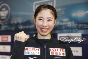 「日本チームで練習してきた昨日の氷とはまた違う感じで。滑りやすいが故に抑える…抑えるっていうかちょっとエッジが揺れやすいみたいなところがあったので。私にとって。今日は曲かけの時もいつもより気持ち滑り込めなかったなっていうような感触で。ジャンプは良かったんですけど。ぴったり合うまでもう少しっていうような感覚だったので。とにかくスケーティングで自分の足に、エッジにしっかり乗せるっていうのを意識しながら今日は練習しました」