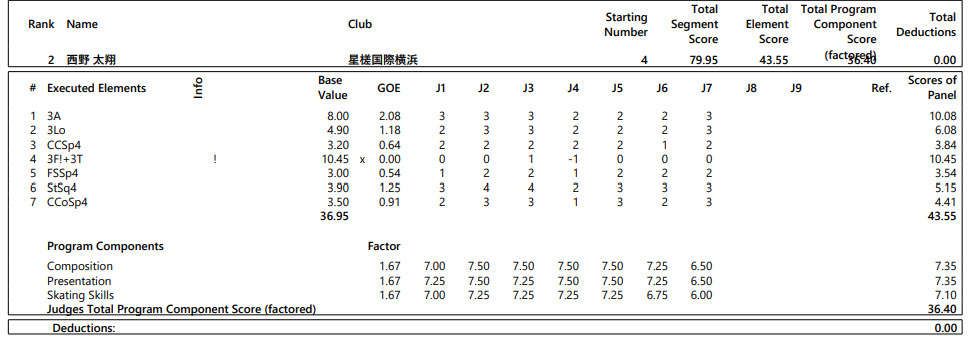 コメント全文 西野太翔、躍進の今シーズン「GPファイナルを決めているから、やっぱ、恥ずかしいことはできない」【全日本ジュニア選手権男子SP】 全日本ジュニア選手権西野 太翔 全日本ジュニア選手権 西野 太翔 SNSでシェア フィギュアスケートの全日本ジュニア選手権は23日、東京辰巳アイスアリーナで開幕してショートプログラム(SP)が行われ、男子で西野太翔(神奈川・星槎国際高横浜)が79.95点で2位につけた。 西野の演技詳細とコメント全文は以下の通り。 ―SPを振り返って。 「今回のショートでは結構、伸び伸び滑れて、そこは、すごい良かったかなと思います」 ―今シーズン、意識して取り組んできたことは? 「ジャンプはもちろんなんですけど、PCS(演技点)の点もすごい(佐藤)操先生と頑張ってきました」 facebook X(旧Twitter) LINE URLをコピー いいね この記事を書いた人 品川 絵里 (しながわ・えり) 2018年に入社し、大分支局を経て20年から東京、大阪、名古屋でスポーツを取材。現在はプロ野球中日、フィギュアスケートなどを担当している。中高は創作ダンス部で、趣味は宝塚歌劇やミュージカル、中韓ドラマの鑑賞。 この記者のページへ進む 次の記事 前の記事 あわせて読みたい 高木謡、仁奈先生の「鬼畜スピン」って? 「バッチリ受けました。3回連続とか、きつい状態で、速く回る練習」【全日本ジュニア選手権女子SP】 コメント全文 NEW 2025.11.23 蛯原大弥、全日本ジュニアまでは追い込んでやろうと「いつもより強度を上げても、けがをしないだろうって思った」【全日本ジュニア選手権男子SP】 コメント全文 NEW 2025.11.23 島田麻央、けがで味わった初めての苦難明かす 「最後になる」大会で注目してほしい部分とは【全日本ジュニア選手権女子SP】 コメント全文 NEW 2025.11.23 金沢純禾、次がファイナルなのでここで決めたい 「跳ぶために高さ出すトレーニングしてきたので」 【全日本ジュニア選手権女子SP】 コメント全文 NEW 2025.11.23 中田璃士、9月のMRIで3カ所くらい疲労骨折と言われて... トーループは痛みあるけど「自分の中ではオッケー」 【全日本ジュニア選手権男子SP】 コメント全文 NEW 2025.11.23 岡 万佑子、ジュニアGPの経験を生かして頑張る 「アクセルも挑戦だけじゃなくて、しっかり降りられるように」【全日本ジュニア選手権女子SP】 コメント全文 NEW 2025.11.23 ピックアップ 友野一希、スケートアメリカで驚いた演技前「ハイタッチ」 黒い革手袋の右手を差し出した平池大人コーチの思いとは 連載 2025.11.20 りかしん結成、紀平梨花が秘めた思い打ち明けて アイスダンスを始めて靱帯損傷に軽度の肋骨骨折 2030年オリンピックへ、西山真瑚「同じ目標持って頑張れる」 インタビュー 2025.11.12 【独自】振付師ブノワ・リショー氏、坂本花織の演技は人の魂を揺さぶる 引退シーズンSPは傑作の予感「この曲で滑るべきと頭に浮かんだ」 インタビュー 2025.11.11 【独自】角野隼斗さん、鍵山優真が持つ三つの速さをピアノ協奏曲に リンクにあったピアノ練習場ですぐに曲作りを開始 インタビュー 2025.11.08 【独自】ゆなすみはダイヤモンドの原石、磨き上げるために鍛える必要ある 「彼らには全てがそろっている」と新たに指導するドミトリー・サビン・コーチ インタビュー 2025.10.28 【独自】理事長就任の本田武史さん、伝統引き継いで 高橋大輔さん、宮原知子さん加入でレベルアップ 四大陸選手権での6点満点が一番うれしかった インタビュー 2025.10.27 新着 インタビュー コメント全文 連載 写真ギャラリー 選手名鑑 大会特集 大会日程 アイスショー Podcast 動画 イベント 選手支援 このサイトでは、利用状況の把握などのために、Cookieなどを使用してアクセスデータを取得・利用しています。 これ以降ページを遷移した場合、Cookieなどの設定や使用に同意したことになります。 オプトアウトについては、当サイトのサイトポリシーをご覧下さい。