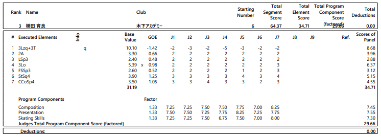 「全体的に見れば、やっぱり最初はミスしてしまって、最初のジャンプまでは少し悪かったんですけど、後半は自分でも満足できる演技ができたと思います」