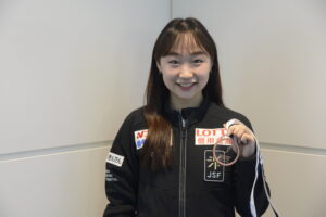 フィギュアスケートのグランプリ(GP)シリーズ最終第6戦、フィンランディア杯でGP2連勝した女子の千葉百音(木下グループ)が24日、開催地ヘルシンキから帰国した関西空港で報道陣の取材に応じた。