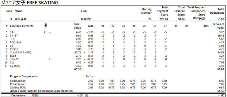 「冒頭トリプルアクセルに挑戦できたってことはすごく良かったことですし、転んではしまったんですけど、その後のジャンプをまあサルコー少しミスはあったんですけど、落ち着いて着氷できたことはすごく良かったかなと思います」