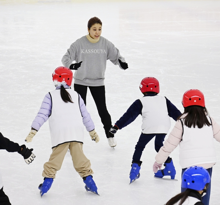 フィギュアスケートの元世界王者、高橋大輔(たかはし・だいすけ)さんと村元哉中(むらもと・かな)さんが11月30日、福岡市のオーヴィジョンアイスアリーナ福岡でスケート教室を開き、初心者を含む約100人の小学生を指導した。