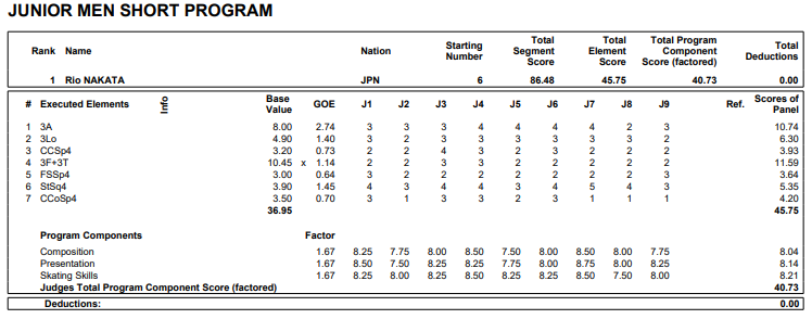 フィギュアスケートのジュニア・グランプリ(GP)ファイナルは4日、名古屋市のIGアリーナで開幕。男子ショートプログラム(SP)で中田璃士(TOKIOインカラミ)が86.48点でトップに立った。