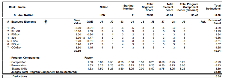 フィギュアスケートのグランプリ(GP)ファイナル第2日は5日、名古屋市のIGアリーナで行われ、女子ショートプログラム(SP)で初出場の中井亜美(TOKIOインカラミ)が73・91点で3位につけた。
