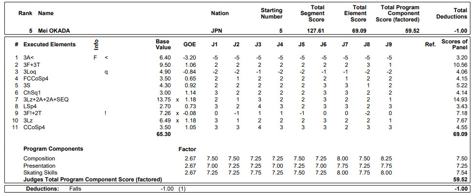 コメント全文 岡田芽依、メダルはど真ん中に「ドン」と飾りたい 「自信になる。自分を褒めてあげたい」【ジュニアGPファイナル女子フリー】 グランプリファイナル岡田 芽依 ジュニア・グランプリファイナル 岡田 芽依 SNSでシェア フィギュアスケートのジュニア・グランプリ(GP)ファイナル第2日は5日、名古屋市のIGアリーナで行われ、女子でショートプログラム(SP)2位の岡田芽依(名東FSC)はフリー5位となり、合計195.82点で3位だった。 岡田の演技詳細とコメント全文は次の通り。 ―メダルをかけてみてください。 「ちょっとまだ信じられなくて、本当に驚いています」 ―表彰台からの表彰式はどうでしたか。 「地元ということもあって、たくさんの日本のお客さまに見守られて、表彰式をやれて、本当に幸せでした」 facebook X(旧Twitter) LINE URLをコピー いいね この記事を書いた人 品川 絵里 (しながわ・えり) 2018年に入社し、大分支局を経て20年から東京、大阪、名古屋でスポーツを取材。現在はプロ野球中日、フィギュアスケートなどを担当している。中高は創作ダンス部で、趣味は宝塚歌劇やミュージカル、中韓ドラマの鑑賞。 この記者のページへ進む 次の記事 前の記事 あわせて読みたい 渡辺倫果、トリプルアクセルとは熟年夫婦のように仲良し 3本跳べたら中田璃士君がおごってくれるって【GPファイナル女子SP】 コメント全文 NEW 2025.12.06 りくりゅう、ラストの笑顔は「くるくる回り過ぎちゃって」 古巣もサポート、五輪へ「こうして表彰台に戻りたい」【GPファイナル・ペアフリー】 コメント全文 NEW 2025.12.05 放心状態の千葉百音、踏ん張り時と骨まで感じた中でやり抜けた 最初の寂しそうな表情の演出は「9割緊張、困り顔みたいな感じ」 【GPファイナル女子SP】 コメント全文 NEW 2025.12.05 坂本花織「これは全滅、ありえるなと」 本当に何が起こったか分からなくて、お客さんの歓声で気づき…【GPファイナル女子SP】 コメント全文 NEW 2025.12.05 中井亜美、正直このような点数をいただけるとは思っていなくて トリプルアクセルは「良い時も悪い時もある友だちっていう存在」 【GPファイナル女子SP】 コメント全文 NEW 2025.12.05 鍵山優真、中1日でフリーへオリンピックのシミュレーションに 今季は反省や抱負、目標を書き出して考え整理するノート活用 【GPファイナル男子公式練習】 コメント全文 NEW 2025.12.05 ピックアップ デザイナーの卵がいつか浅田真央さんの衣装を作ると決心するまで 試行錯誤の日々、2週間で仕上げた羽生結弦さんの『オペラ座の怪人』 伊藤聡美さんインタビュー(上) 連載 2025.11.29 りくりゅうが持つ強みを引き出し、最高の状態に導くことが仕事 自分たちらしくあるから生まれる2人の特別な魔法保つことが重要 【名将ブルーノの目・第4回GPスケートアメリカ(下)】 連載 2025.12.01 友野一希、スケートアメリカで驚いた演技前「ハイタッチ」 黒い革手袋の右手を差し出した平池大人コーチの思いとは 連載 2025.11.20 【独自】振付師ブノワ・リショー氏、坂本花織の演技は人の魂を揺さぶる 引退シーズンSPは傑作の予感「この曲で滑るべきと頭に浮かんだ」 インタビュー 2025.11.11 【独自】ゆなすみはダイヤモンドの原石、磨き上げるために鍛える必要ある 「彼らには全てがそろっている」と新たに指導するドミトリー・サビン・コーチ インタビュー 2025.10.28 【独自】理事長就任の本田武史さん、伝統引き継いで 高橋大輔さん、宮原知子さん加入でレベルアップ 四大陸選手権での6点満点が一番うれしかった インタビュー 2025.10.27 新着 インタビュー コメント全文 連載 写真ギャラリー 選手名鑑 大会特集 大会日程 アイスショー Podcast 動画 イベント 選手支援 このサイトでは、利用状況の把握などのために、Cookieなどを使用してアクセスデータを取得・利用しています。 これ以降ページを遷移した場合、Cookieなどの設定や使用に同意したことになります。 オプトアウトについては、当サイトのサイトポリシーをご覧下さい。