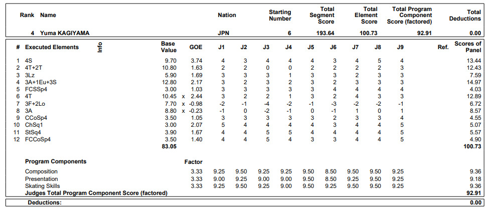 フィギュアスケートのグランプリ(GP)ファイナル最終日は6日、名古屋市のIGアリーナで行われ、男子はショートプログラム(SP)首位の鍵山優真(オリエンタルバイオ・中京大)がフリー4位の合計302.41点で2年連続の2位だった。