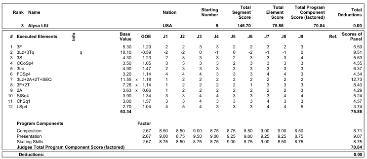 フィギュアスケートのグランプリ(GP)ファイナル最終日は6日、名古屋市のIGアリーナで行われ、女子はショートプログラム(SP)2位のアリサ・リュウ(米国)がフリー3位の222.49点で初優勝した。