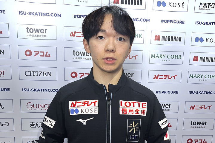 フィギュアスケートのグランプリ(GP)ファイナルで男子2位の鍵山優真(オリエンタルバイオ・中京大)がフリーから一夜明けた7日、名古屋市のIGアリーナで報道陣の取材に応じ、エキシビションに出演した。