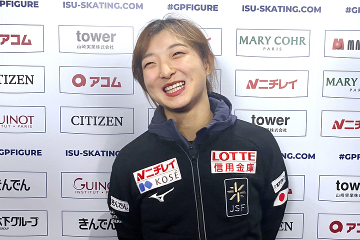 フィギュアスケートのグランプリ(GP)ファイナルで女子3位の坂本花織(シスメックス)がフリーから一夜明けた7日、名古屋市のIGアリーナで報道陣の取材に応じ、エキシビションに出演した。