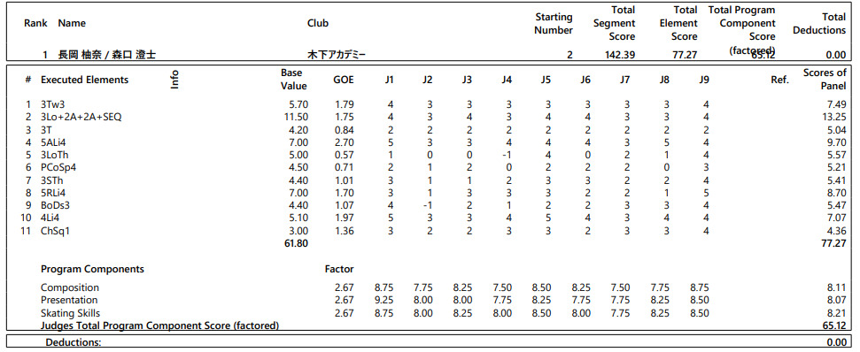 長岡、森口組の演技詳細とコメント全文は次の通り。