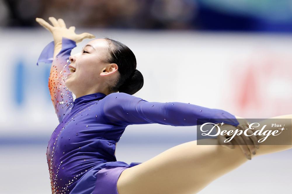 「トリプルアクセルをショートとフリーともに成功することができて、すごいうれしい気持ちでいっぱいなのと。フリップジャンプが手をついてしまったり、危ないジャンプになってしまったところがすごい悔しいんですけど、自己ベストを更新することができてすごいうれしいです」