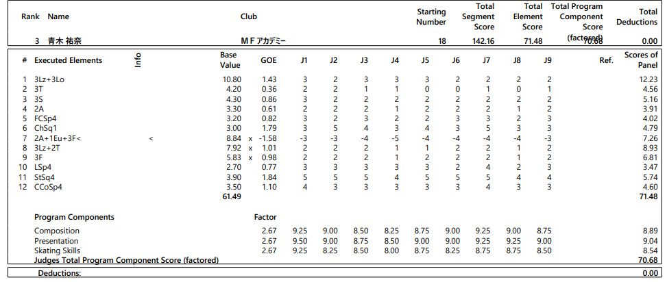 青木祐奈が自己最高5位 フリーは140点超えの3位