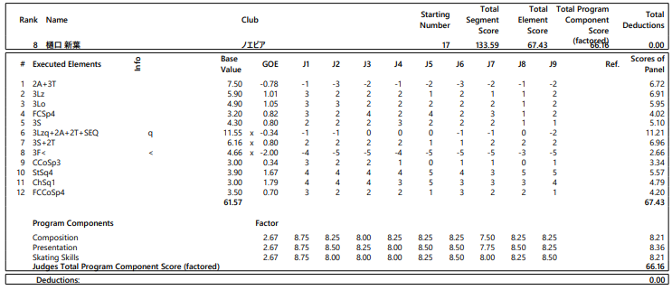 コメント全文 樋口新葉、演技直後に最後だからいっかと思って大の字に 岡島先生にずっと手を握られていて泣きそうになった【全日本フィギュア女子フリー】 全日本選手権樋口 新葉 全日本選手権 樋口 新葉 SNSでシェア フィギュアスケートのミラノ・コルティナ冬季オリンピック代表最終選考会を兼ねる全日本選手権最終日は21日、東京・国立代々木競技場で行われ、女子で2022年北京オリンピック団体銀メダルメンバーの樋口新葉(ノエビア)はショートプログラム(SP)に続いてフリーも8位となり、合計203.06点で8位だった。 樋口の演技詳細とコメント全文は次の通り。 ー現役最後の全日本を終えて、今の率直なお気持ちを教えてください。 「ショートもフリーも今までで一番良かったんじゃないかなと思う出来だったので、細かいミスとかは置いといて、すごく楽しく滑れました」 全日本選手権 樋口 新葉 facebook X(旧Twitter) LINE URLをコピー いいね この記事を書いた人 藤原 慎也 (ふじわら・しんや) 全国紙で5年間の勤務を経て、2014年に入社。名古屋でプロ野球中日を取材。2016年末に東京運動部へ異動し、フィギュアスケート、体操、パラスポーツを担当。だんじり祭りで有名な岸和田市育ち。 この記者のページへ進む 次の記事 前の記事 あわせて読みたい 山下真瑚、最後に氷をなで「頑張ったね、けど悔しいねって」 「イナバウアーとかイーグルとか記憶に残るコレオできた」【全日本フィギュア女子フリー】 コメント全文 NEW 2025.12.22 河辺愛菜、トリプルアクセル挑戦に込めた思い 最後まで諦めず気持ち伝えた演技「何も後悔はない」【全日本フィギュア女子フリー】 コメント全文 NEW 2025.12.22 江川マリア、カリビアン・クルーズ就職でアイスショーに転身へ 心の中で引退決めていた「高橋大輔さんには感謝しています」【全日本フィギュア女子フリー】 コメント全文 NEW 2025.12.22 三原舞依「ウオータープルーフのマスカラで良かったなって。思った以上に涙があふれて、本当に前が見えなくなるくらい」【全日本フィギュア女子フリー】 コメント全文 NEW 2025.12.22 松生理乃、くるみ割り人形の今できる100%出せた 「フリーの方が得意なんだねってよく言われる」【全日本フィギュア女子フリー】 コメント全文 NEW 2025.12.22 三宅咲綺、トリプルアクセルは今後も「やったる」 演技前、三原舞依から受け取った心のバトン【全日本フィギュア女子フリー】 コメント全文 NEW 2025.12.22 ピックアップ 夢がかなった先に見えたパリでのファッションショー デザイナーの考えが尊重される海外選手からの依頼 伊藤聡美さんに聞く(下) 連載 2025.12.10 【独自】本郷裕子コーチ、「ここまでなのかな」と漏らした山本草太が満知子先生の言葉で... ジャンプに執着すると「振りとか上手なのに省いたりするから…」 【単独インタビュー・3回続きの(上)】 インタビュー 2025.12.09 りくりゅうが持つ強みを引き出し、最高の状態に導くことが仕事 自分たちらしくあるから生まれる2人の特別な魔法保つことが重要 【名将ブルーノの目・第4回GPスケートアメリカ(下)】 連載 2025.12.01 友野一希、スケートアメリカで驚いた演技前「ハイタッチ」 黒い革手袋の右手を差し出した平池大人コーチの思いとは 連載 2025.11.20 【独自】振付師ブノワ・リショー氏、坂本花織の演技は人の魂を揺さぶる 引退シーズンSPは傑作の予感「この曲で滑るべきと頭に浮かんだ」 インタビュー 2025.11.11 【独自】ゆなすみはダイヤモンドの原石、磨き上げるために鍛える必要ある 「彼らには全てがそろっている」と新たに指導するドミトリー・サビン・コーチ インタビュー 2025.10.28 新着 インタビュー コメント全文 連載 写真ギャラリー 選手名鑑 大会特集 大会日程 アイスショー Podcast 動画 イベント 選手支援 このサイトでは、利用状況の把握などのために、Cookieなどを使用してアクセスデータを取得・利用しています。 これ以降ページを遷移した場合、Cookieなどの設定や使用に同意したことになります。 オプトアウトについては、当サイトのサイトポリシーをご覧下さい。