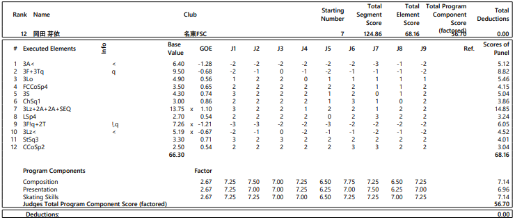 「フリーの前、すごく緊張したんですけど、トリプルアクセルに思いっ切り挑戦することができて、着氷することができたことが今回一番良くて。その残りのジャンプも大きなミスなく降りれらたところも、今回すごい良かったところかなって思います」
