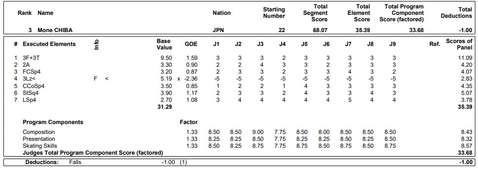 ―3回転ルッツで転倒。練習から(ジャンプの)感覚が合わないという感じだったのでしょうか