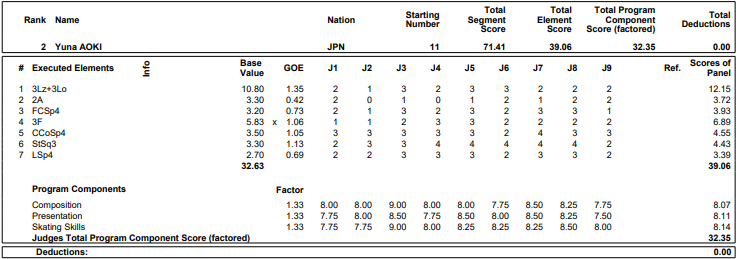 青木祐奈「70点以上出せたのは大きい」 四大陸選手権女子SP