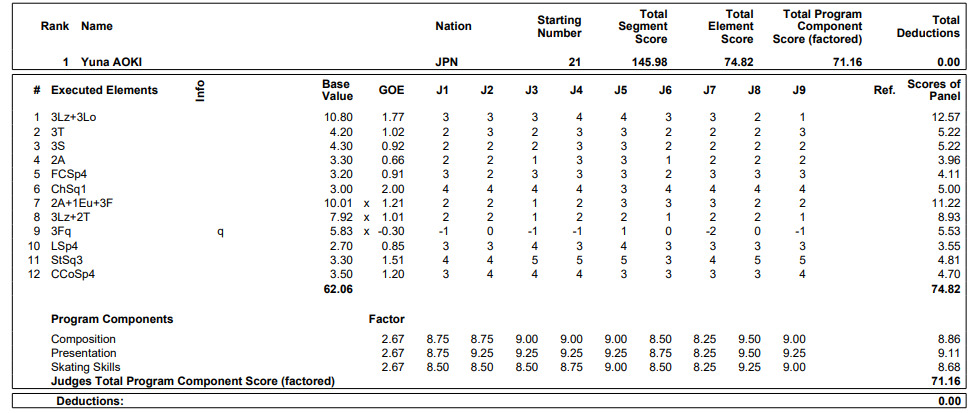 フィギュアスケートの四大陸選手権第2日は23日、北京で行われ、女子は24歳の青木祐奈(MFアカデミー)が自己ベストを大幅に更新する合計217.39点で初出場優勝を果たした。フリーはトップでショートプログラム(SP)2位から逆転した。