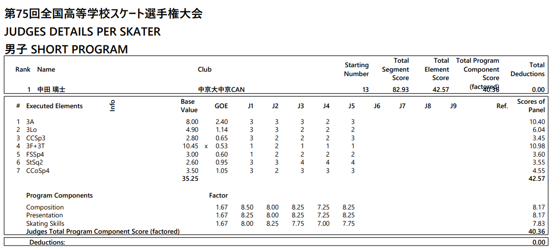「はい。 なります。自己ベストが全日本ジュニアで170点で171って聞いたので、あの全日本ジュニアの演技をすれば勝てるとは思ったんですけど、なかなかそれはできるもんじゃない。やっぱりいいことは、彼のマックスがあれなので。まああれを超えればいいだけなのでいけると思います。