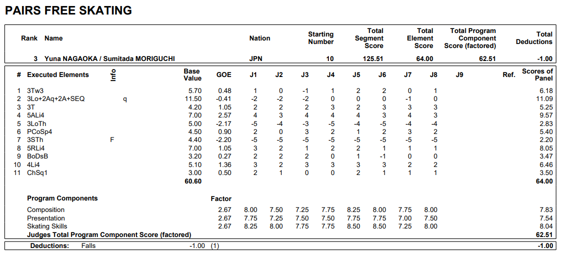 長岡、森口組の演技詳細とコメント全文は次の通り。