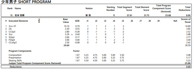 コメント全文 松本悠輝、帯同する田村岳斗コーチに教わって成長した部分は- 来季に向け「ちょっと身長が低くても演技に迫力が出るように」【国民スポーツ大会冬季大会少年男子SP】 国民スポーツ大会冬季大会松本 悠輝 国民スポーツ大会冬季大会 松本 悠輝(撮影・宮脇奈月子) SNSでシェア 国民スポーツ大会冬季大会スケート、アイスホッケー競技会第3日は2日、青森県フラット八戸などで行われ、フィギュアの少年男子はショートプログラム(SP)で松本悠輝(新潟・LYS)が57.61点で15位となった。 松本の演技詳細とコメント全文は次の通り。 —お疲れさまでした。今日振り返って、まずは今どんなお気持ちですか。 「結構、割とジャンプに関しては質のいいジャンプができて、でもちょっと駄目なところっていうか、あれだったのはスピンでちょっとふらついてしまったので、そこがちょっと、もうちょっとこう頑張らないといけないっていうか、直さないといけないなっていう感じです」 facebook X(旧Twitter) LINE URLをコピー いいね 次の記事 前の記事 あわせて読みたい 蛯原大弥、友達との絆がすごく深まる大会 「一緒に戦っている気持ちで応援する」 【国民スポーツ大会冬季大会少年男子SP】 コメント全文 NEW 2026.02.03 『タイタニック』で“武器”を磨いた三宅星南 「これからどこまでいけるか、ワクワクしている」 【国民スポーツ大会冬季大会成年男子フリー】 コメント全文 NEW 2026.02.03 高橋星名、ドキドキしているときのハイタッチが新鮮 「来シーズンはいろいろな大会でリベンジしたい」【国民スポーツ大会冬季大会少年男子SP】 コメント全文 NEW 2026.02.03 大島光翔、反面教師で手に持っていたのは「今日こうならないように」 リンクへ行く道でキャーキャー言われ「青森でアイドルでもやろうかな」【国民スポーツ大会冬季大会成年男子フリー】 コメント全文 NEW 2026.02.03 中村俊介「そうちゃんの順位は心の余裕をつくってくれた」 『ラストサムライ』で表現したいことは? 【国民スポーツ大会冬季大会成年男子フリー】 コメント全文 NEW 2026.02.03 森遼人、いろんな経験を積んだ今シーズン 「やらなきゃいけないところで決められるように」 【国民スポーツ大会冬季大会少年男子フリー】 コメント全文 NEW 2026.02.03 ピックアップ りくりゅうはオリンピックへ「正しいタイミングでピークを迎える立場」 1年目のあゆルカは多くのことを吸収する時期「戦略や感覚話し合う」【名将ブルーノの目・第6回全日本選手権(下)】 連載 2026.01.30 中井亜美選手が感動与えられるプログラムになるんじゃないか オリンピックで心の底からの笑顔あふれる演技を見せてくれたら【第4回・宮本賢二 表現の設計図】 連載 2026.01.27 【無料再公開・下】「メダリスト」夢のアニメ化、「プロデューサーみたいな気持ちで頑張りたい」原作者のつるまいかださんインタビュー 連載 2026.01.23 元NMB48の川上千尋さんが友野一希選手らと切磋琢磨した8年間 フィギュアスケートからアイドルの世界へ 【上】 インタビュー 2026.01.31 俳優の室井滋さんが大好きだった札幌冬季オリンピックの「氷の妖精」 「この人の滑りは全然違う」とテレビにくぎ付け 【上】 インタビュー 2026.01.28 今回のショートで「準備できている」と強いメッセージを出せた りくりゅうは練習再開「フリー棄権はオリンピックへの安全策」【名将ブルーノの目・第6回全日本選手権(上)】 連載 2026.01.26 新着 インタビュー コメント全文 連載 写真ギャラリー 選手名鑑 大会特集 大会日程 アイスショー Podcast 動画 イベント 選手支援 このサイトでは、利用状況の把握などのために、Cookieなどを使用してアクセスデータを取得・利用しています。 これ以降ページを遷移した場合、Cookieなどの設定や使用に同意したことになります。 オプトアウトについては、当サイトのサイトポリシーをご覧下さい。