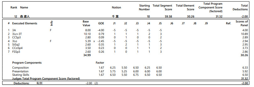 コメント全文 森遼人 、優勝候補の千葉代表で「土下座することになんないと...」 チーム戦が初めて「みんなでわいわいやっていて楽しいなって」【国民スポーツ大会冬季大会少年男子SP】 国民スポーツ大会冬季大会森 遼人 国民スポーツ大会冬季大会 森 遼人(撮影・宮脇奈月子) SNSでシェア 国民スポーツ大会冬季大会スケート、アイスホッケー競技会第3日は2日、青森県フラット八戸などで行われ、フィギュアの少年男子はショートプログラム(SP)で東葉高の森遼人(千葉・ MFアカデミー)が59.58点で12位となった。 森の演技詳細とコメント全文は次の通り。 —いかがでしたか。 「アクセルが前回のインターハイと同じような転び方をしちゃって、すごいなんか嫌な感じというか、が最初にしちゃって。3—3はなんとかなったんですけど、ループがやっぱり降りた後にちょっと油断したのかなっていうのは思います」 —降りた後にスルって? 「なんかそんな感じがあります」 facebook X(旧Twitter) LINE URLをコピー いいね 次の記事 前の記事 あわせて読みたい 蛯原大弥、友達との絆がすごく深まる大会 「一緒に戦っている気持ちで応援する」 【国民スポーツ大会冬季大会少年男子SP】 コメント全文 NEW 2026.02.03 松本悠輝、帯同する田村岳斗コーチに教わって成長した部分は- 来季に向け「ちょっと身長が低くても演技に迫力が出るように」【国民スポーツ大会冬季大会少年男子SP】 コメント全文 NEW 2026.02.03 『タイタニック』で“武器”を磨いた三宅星南 「これからどこまでいけるか、ワクワクしている」 【国民スポーツ大会冬季大会成年男子フリー】 コメント全文 NEW 2026.02.03 高橋星名、ドキドキしているときのハイタッチが新鮮 「来シーズンはいろいろな大会でリベンジしたい」【国民スポーツ大会冬季大会少年男子SP】 コメント全文 NEW 2026.02.03 大島光翔、反面教師で手に持っていたのは「今日こうならないように」 リンクへ行く道でキャーキャー言われ「青森でアイドルでもやろうかな」【国民スポーツ大会冬季大会成年男子フリー】 コメント全文 NEW 2026.02.03 中村俊介「そうちゃんの順位は心の余裕をつくってくれた」 『ラストサムライ』で表現したいことは? 【国民スポーツ大会冬季大会成年男子フリー】 コメント全文 NEW 2026.02.03 ピックアップ りくりゅうはオリンピックへ「正しいタイミングでピークを迎える立場」 1年目のあゆルカは多くのことを吸収する時期「戦略や感覚話し合う」【名将ブルーノの目・第6回全日本選手権(下)】 連載 2026.01.30 中井亜美選手が感動与えられるプログラムになるんじゃないか オリンピックで心の底からの笑顔あふれる演技を見せてくれたら【第4回・宮本賢二 表現の設計図】 連載 2026.01.27 【無料再公開・下】「メダリスト」夢のアニメ化、「プロデューサーみたいな気持ちで頑張りたい」原作者のつるまいかださんインタビュー 連載 2026.01.23 元NMB48の川上千尋さんが友野一希選手らと切磋琢磨した8年間 フィギュアスケートからアイドルの世界へ 【上】 インタビュー 2026.01.31 俳優の室井滋さんが大好きだった札幌冬季オリンピックの「氷の妖精」 「この人の滑りは全然違う」とテレビにくぎ付け 【上】 インタビュー 2026.01.28 今回のショートで「準備できている」と強いメッセージを出せた りくりゅうは練習再開「フリー棄権はオリンピックへの安全策」【名将ブルーノの目・第6回全日本選手権(上)】 連載 2026.01.26 新着 インタビュー コメント全文 連載 写真ギャラリー 選手名鑑 大会特集 大会日程 アイスショー Podcast 動画 イベント 選手支援 このサイトでは、利用状況の把握などのために、Cookieなどを使用してアクセスデータを取得・利用しています。 これ以降ページを遷移した場合、Cookieなどの設定や使用に同意したことになります。 オプトアウトについては、当サイトのサイトポリシーをご覧下さい。