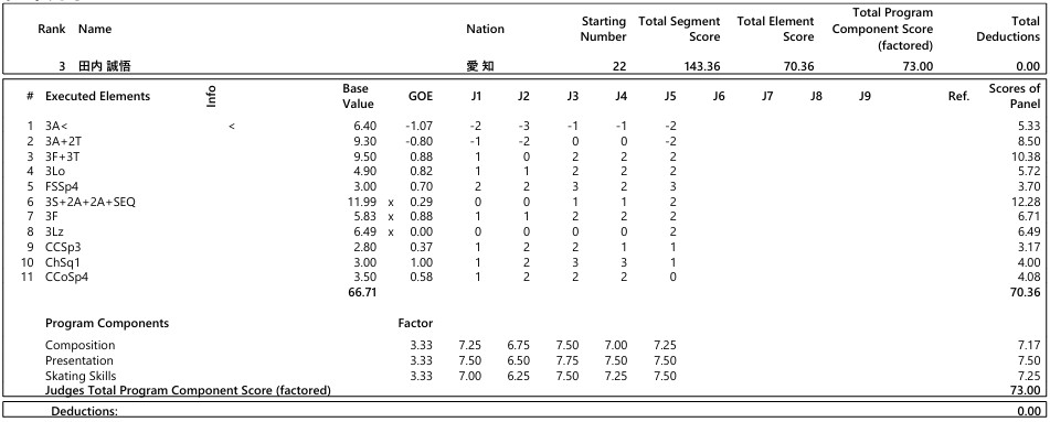 「結果的にダブルトーループでちょっと乱れてしまったんですけど、トリプルアクセル2本目着氷できたことをすごく嬉しく思いますし、その後も大きく失速することなく最後まで滑り切れたのは良かったかなと思います」