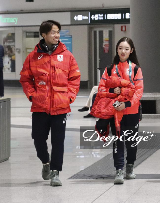 【ミラノ共同】フィギュアスケートのペアで初代表の長岡柚奈、森口澄士組(木下アカデミー)が4日、ミラノに到着し、報道陣の取材に応じた。