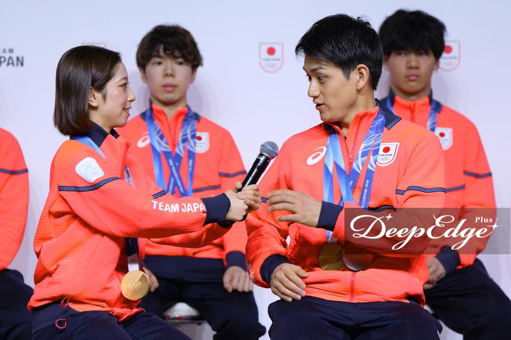 ミラノ・コルティナ冬季五輪で大活躍した日本の15人のメダリストたちが24日、晴れやかな表情で帰国記者会見の壇上に並んだ。首から光り輝くメダルを下げた選手たちは、口々に応援への感謝を述べた。