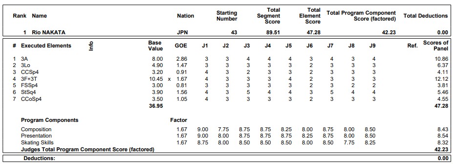 演技詳細とSP後のコメント全文は次の通り。