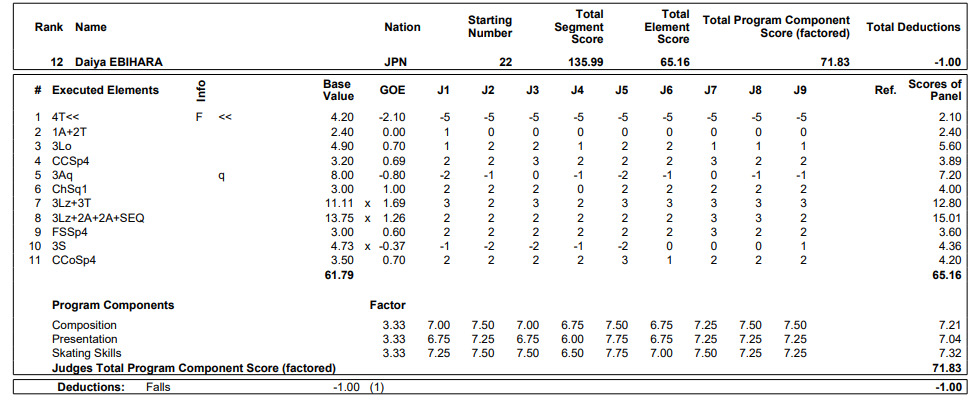 蛯原のフリーの演技詳細と一夜明けのコメントは次の通り。